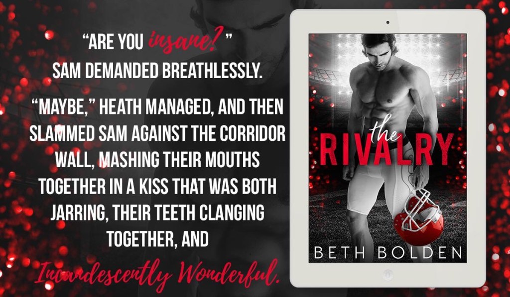 The second time they meet, Sam has just been traded to Heath’s team, and instead of lovers, now they’re rivals. Heath has spent the last five years working desperately to be the best quarterback the Riptide could ever need, but when injuries threaten to derail his career, Sam is right there, standing on the sideline. Ready to take over, and ready to ruin everything Heath has given his life for.