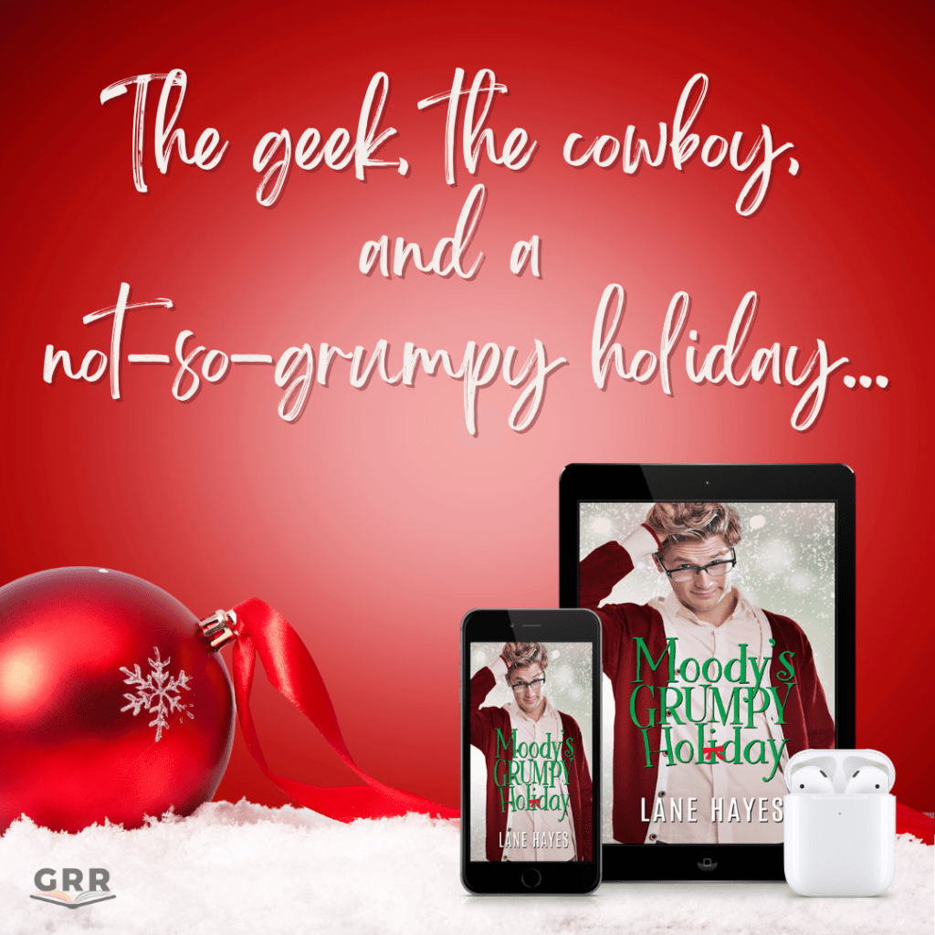 Moody’s Grumpy Holiday is an MM grumpy-sunshine, romantic comedy featuring an adorkable geek, a hunky cowboy, and a little seasonal magic.