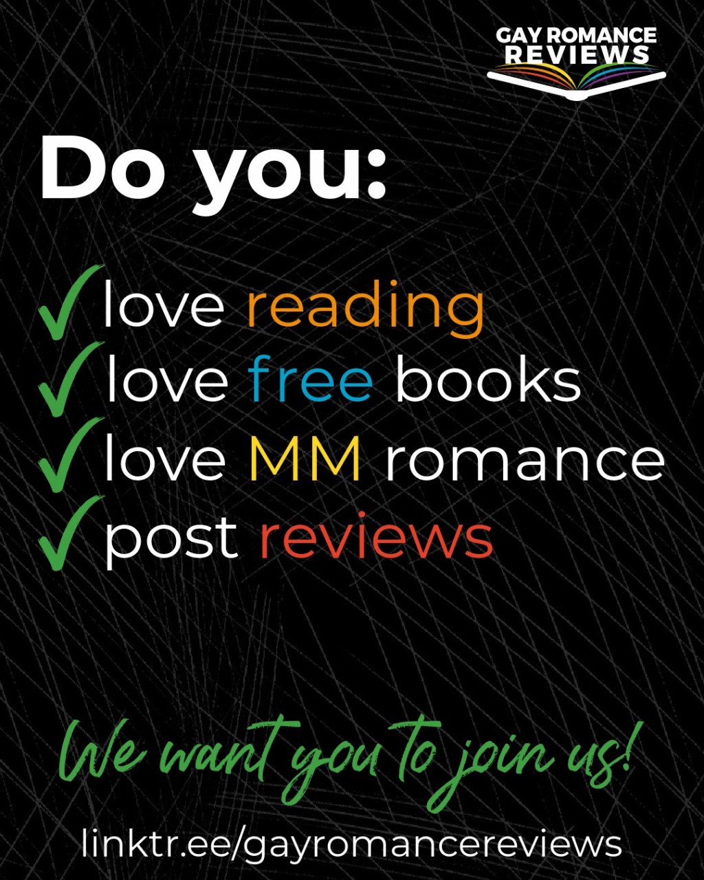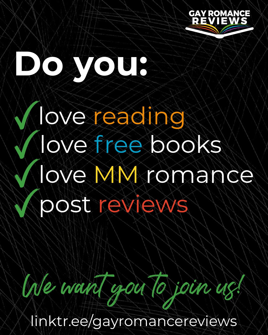 Sign up here!! https://linktr.ee/gayromancereviews